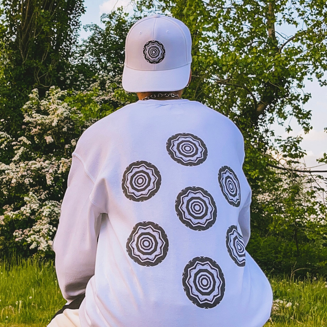 Men’s 3ETD “417” Cymatic Print Streetwear Set (White)
