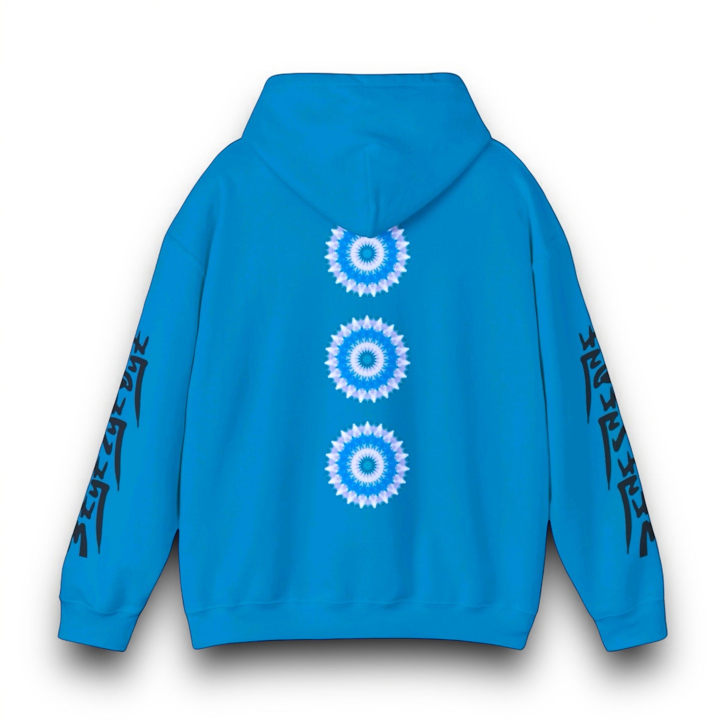 This 3EyeTyeDye E-VEIL EYE Cymatic Print hooded sweatshirt is relaxation itself. Made with a thick blend of cotton and polyester, it feels plush, soft and warm, a perfect choice for any cold day. In the front, the spacious kangaroo pocket adds daily practicality while the hood's drawstring is the same color as the base sweater for extra style points.