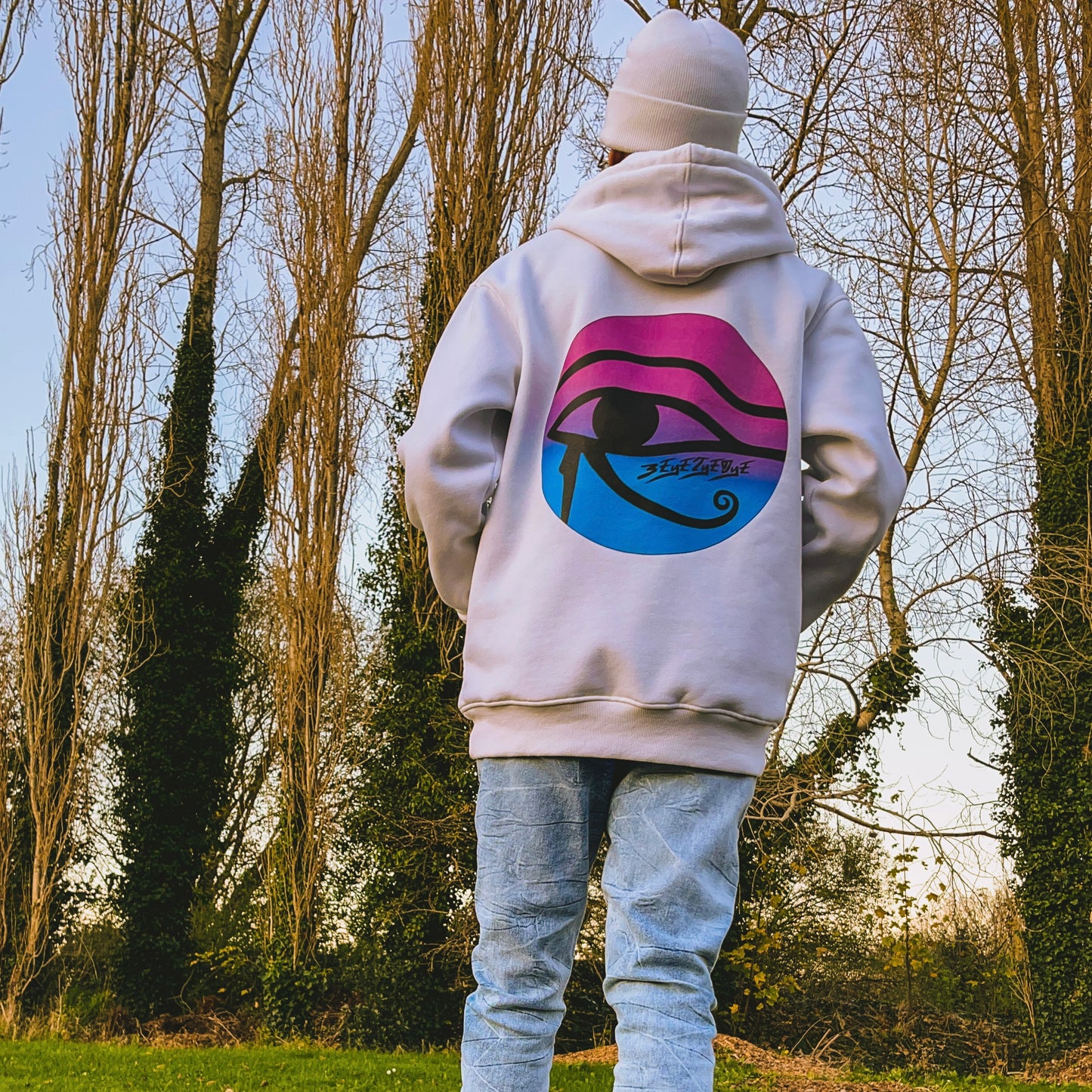 The eye of Horus represents the cross section of the human brain and was/is used as a sign of prosperity & protection. Embedded into the logo at the back of the hoodie it is guaranteed to keep the wearer safe from the malicious intentions of others, while simultaneously helping to attract prosperity into one’s life.