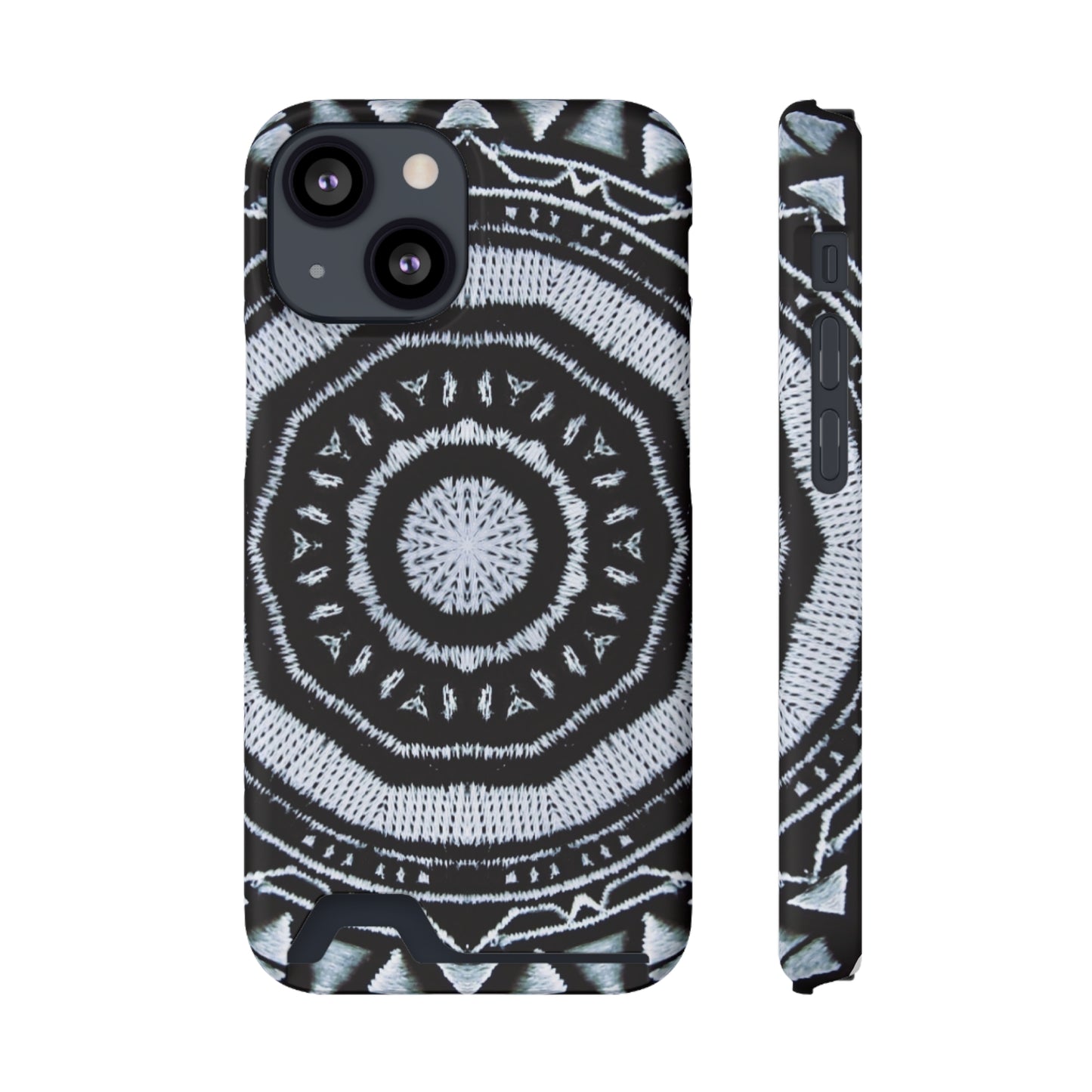 This phone case-cardholder combo will keep essential items safe in one place. Trust the polycarbonate to keep it impact-resistant through regular wear and tear. The Kaleido47 Cymatic print covers all over the exterior, and you can choose between a glossy or matte finish. Gift packaging is also available. Compatible with iPhone 13, and Samsung Galaxy S21, S22 models.