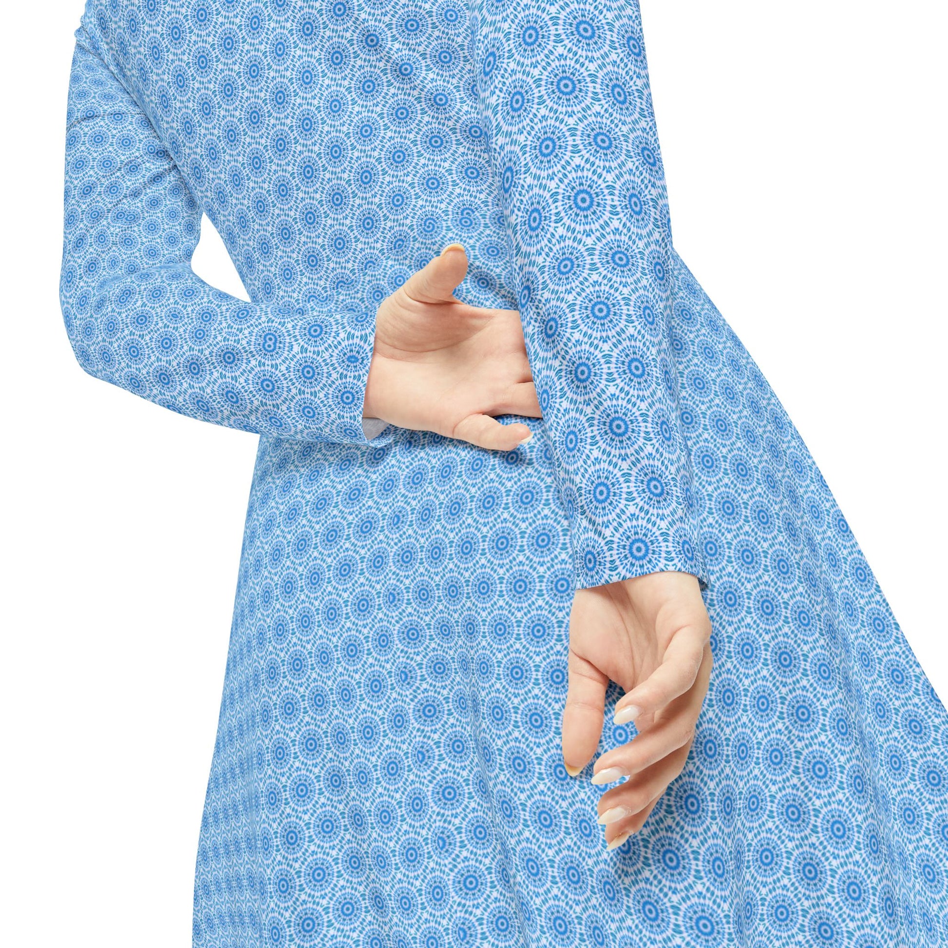 Incorporate elegance and joy into your wardrobe with this Women's Long Sleeve All Over Print Dress. Perfect for twirling on the dance floor or enjoying a casual outing, this dress offers a flowy silhouette that radiates confidence. Its vibrant colors and unique patterns ensure you stand out at any event. Ideal for dance enthusiasts, fashion-forward individuals, or anyone looking to add a playful touch to their closet, this dress is a must-have for various occasions, from parties to outdoor festivals and celebrations. Enjoy the comfort and style that make every moment special, whether it's a festive celebration or a relaxed day out with friends.
