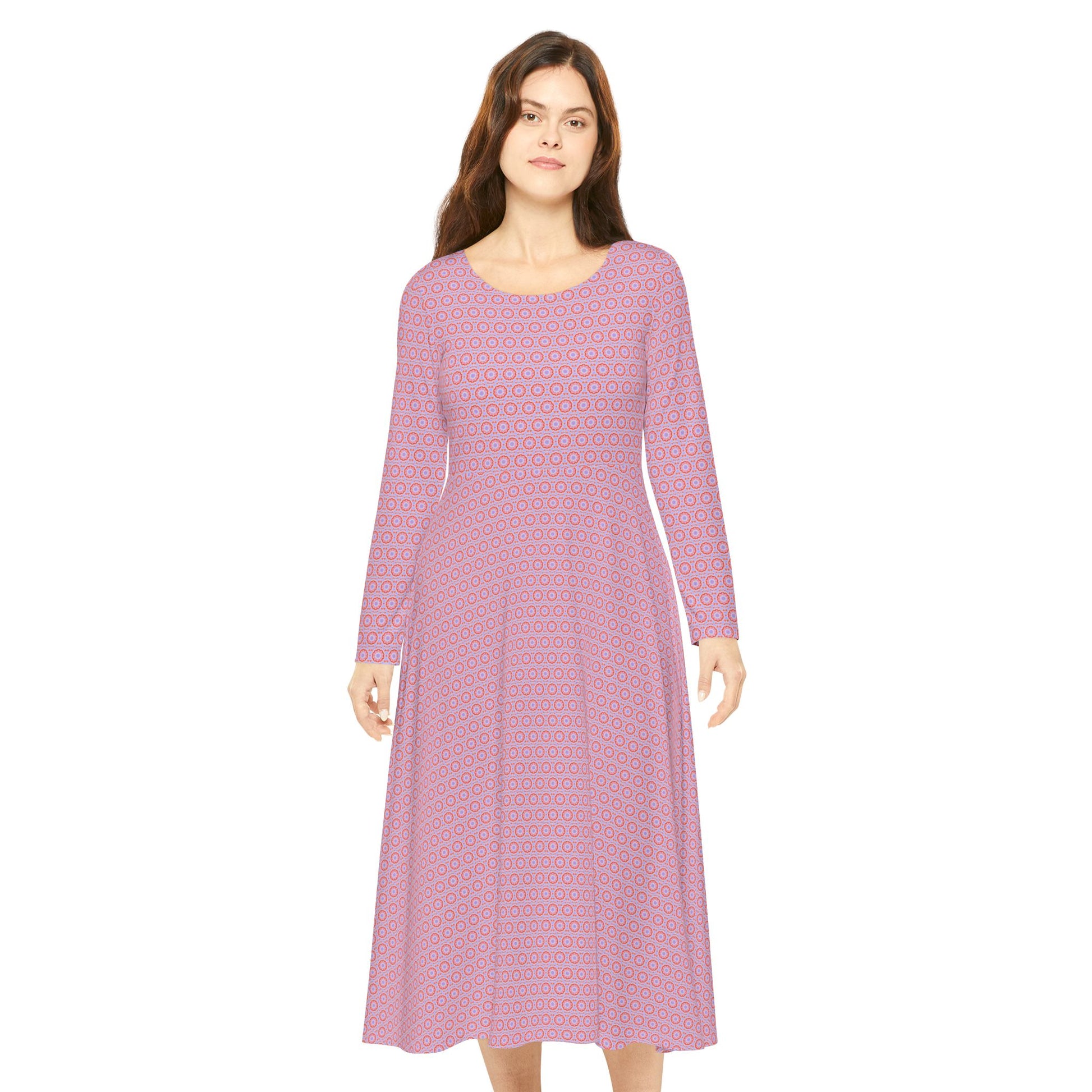 Incorporate elegance and joy into your wardrobe with this Women's Long Sleeve All Over Print Dress. Perfect for twirling on the dance floor or enjoying a casual outing, this dress offers a flowy silhouette that radiates confidence. Its vibrant colors and unique patterns ensure you stand out at any event. Ideal for dance enthusiasts, fashion-forward individuals, or anyone looking to add a playful touch to their closet, this dress is a must-have for various occasions, from parties to outdoor festivals and celebrations. Enjoy the comfort and style that make every moment special, whether it's a festive celebration or a relaxed day out with friends.